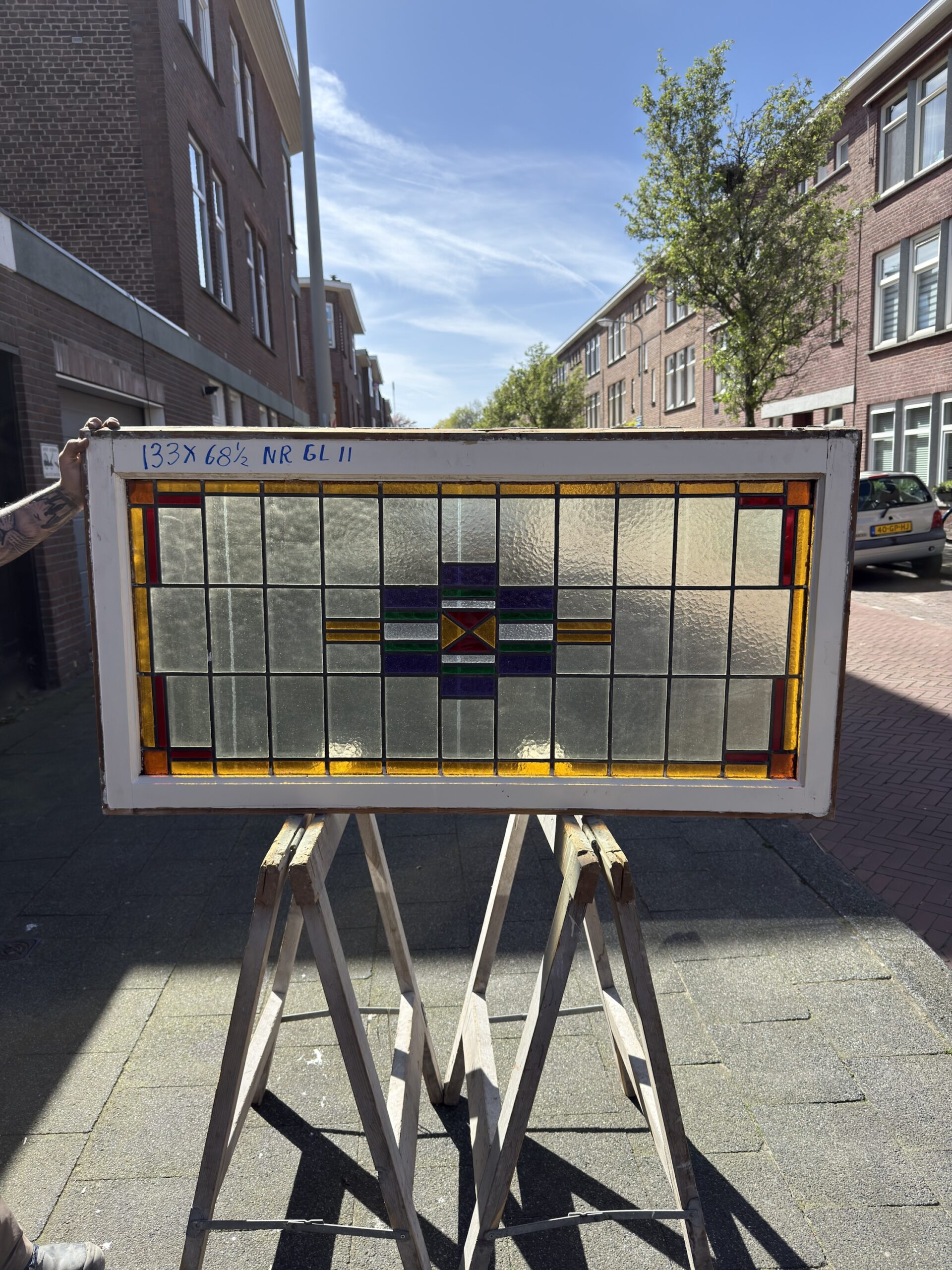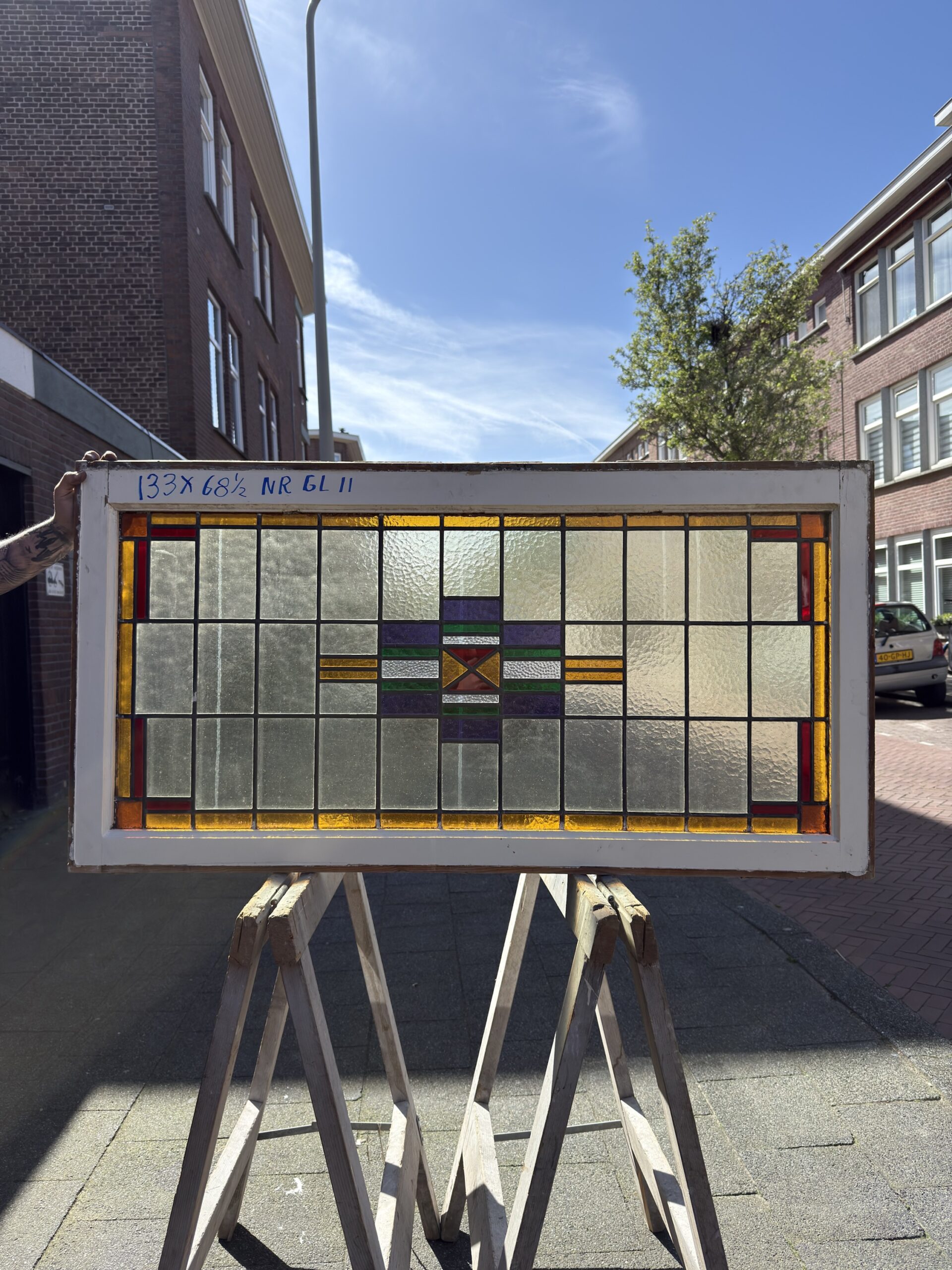 Antiek Glas-in-Lood Raam – Art Deco | 133 × 68,5 cm | Nr. GL11