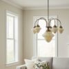 Deze stijlvolle kroonluchter is een echte blikvanger voor in huis. De lamp beschikt over vier elegante armen met schitterende marmerlook glazen bollen, wat zorgt voor een warme en luxe uitstraling. De messing stangen geven het geheel een tijdloze, chique afwerking.
