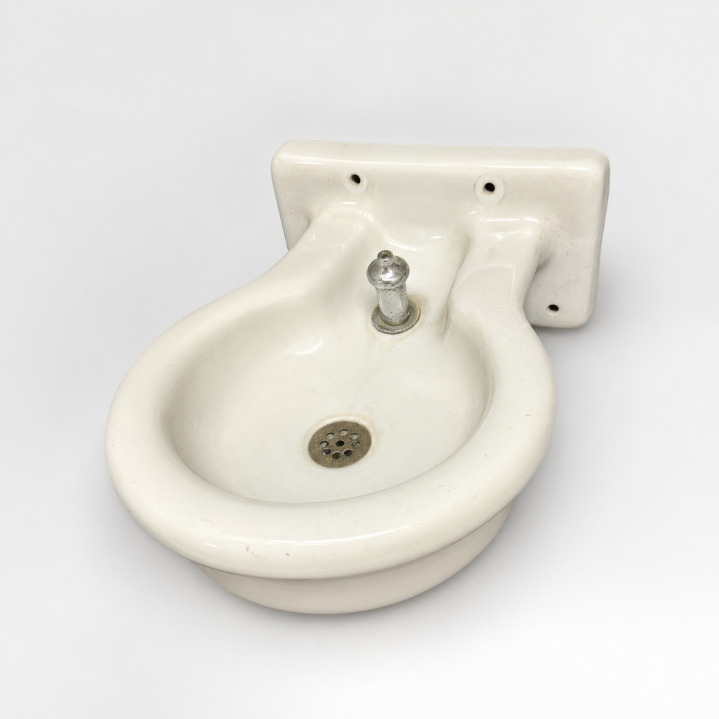 Dit authentieke drinkfonteintje is een karakteristiek element met een duidelijke knipoog naar vroeger. Oorspronkelijk ontworpen om direct uit te drinken, zoals je die nog kent van oude schoolgebouwen of openbare ruimtes.