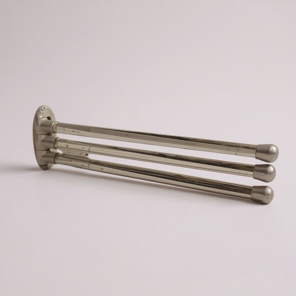 Geef je badkamer, toilet of keuken een stijlvolle vintage uitstraling met dit unieke zwenkbare handdoekrek. Het rek is voorzien van drie elegante staven van verhard glas, die elk afzonderlijk kunnen worden versteld. Zo bepaal je zelf hoeveel ruimte je nodig hebt en creëer je een overzichtelijke, luchtige manier om handdoeken te laten drogen.
